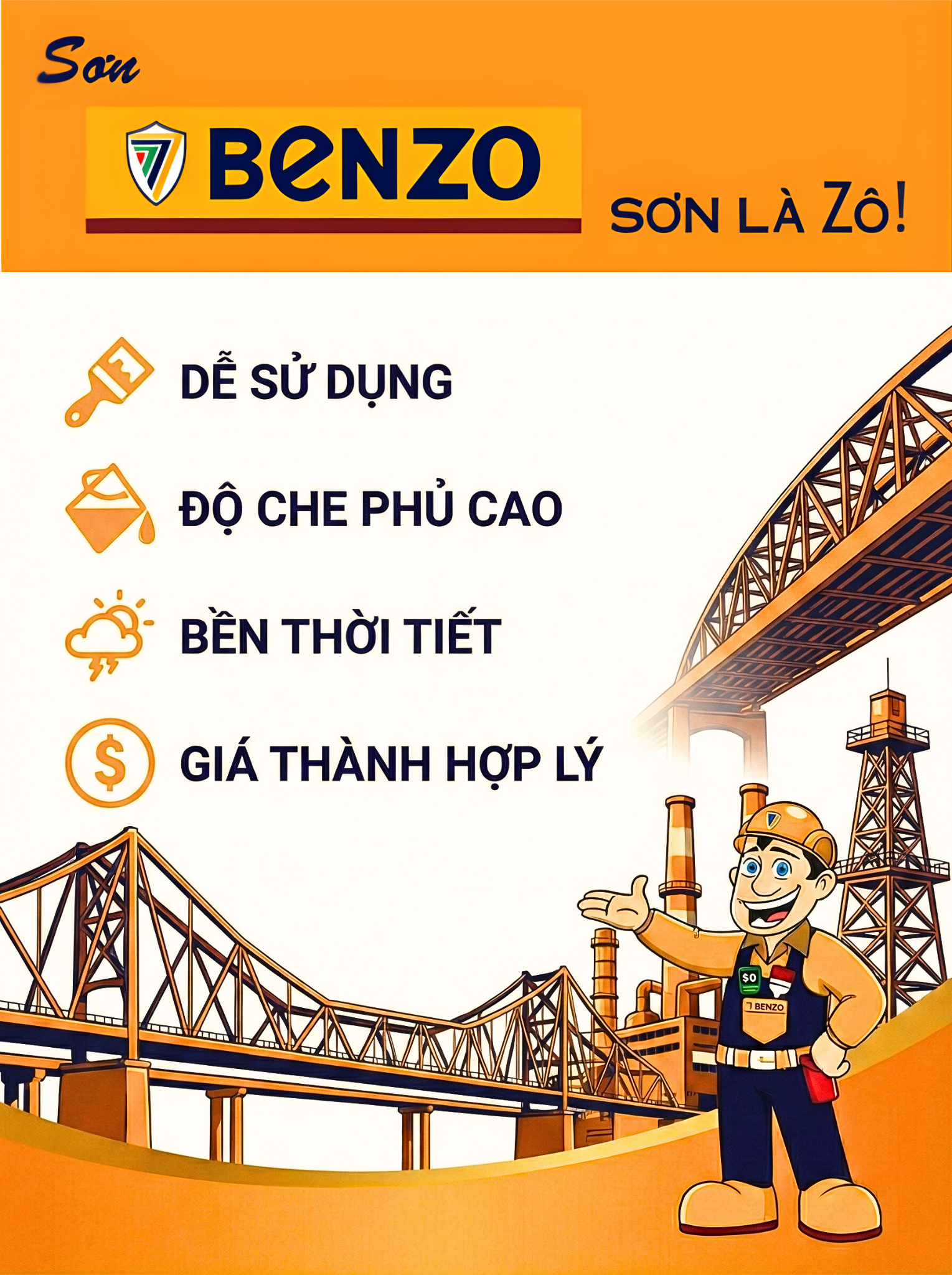 Sơn phủ màu Epoxy Benzo là dòng sơn cao cấp hai thành phần, chuyên dụng cho kết cấu thép, kim loại,…, mang lại độ bám dính vượt trội, chống ăn mòn, chịu lực và kháng hóa chất. Với công nghệ tiên tiến, sản phẩm đảm bảo màng sơn bóng mịn, bền màu lâu dài ngay cả trong môi trường khắc nghiệt.